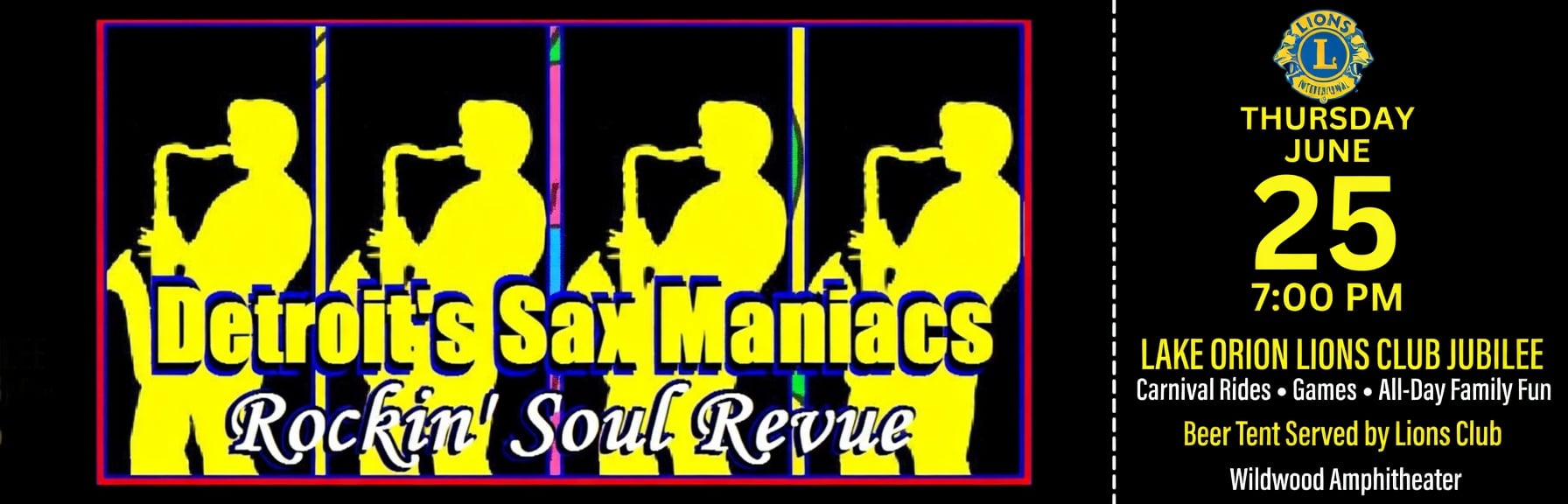 FREE Jubilee kickoff—Sax Maniacs deliver a high-energy mix of rock, soul, and horn-powered hits.